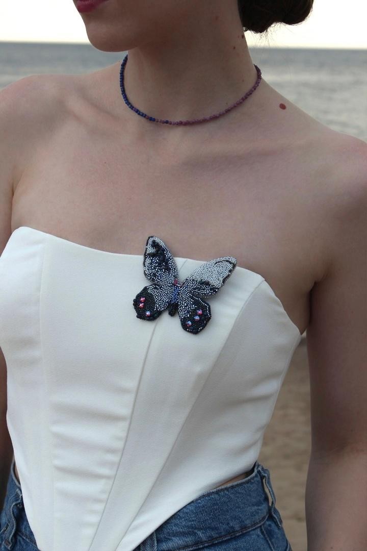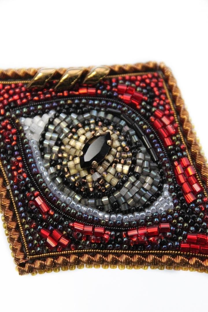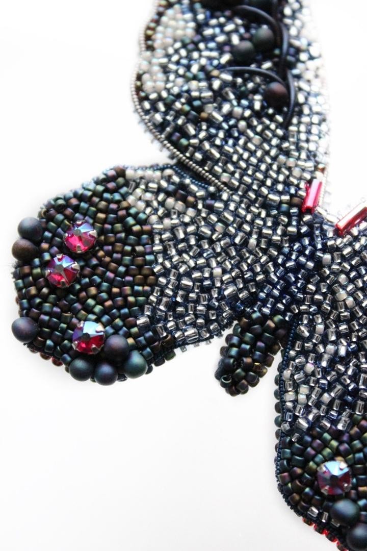 Брошь выполнена из вышивки ювелирным японским бисером, камнями Swarovski