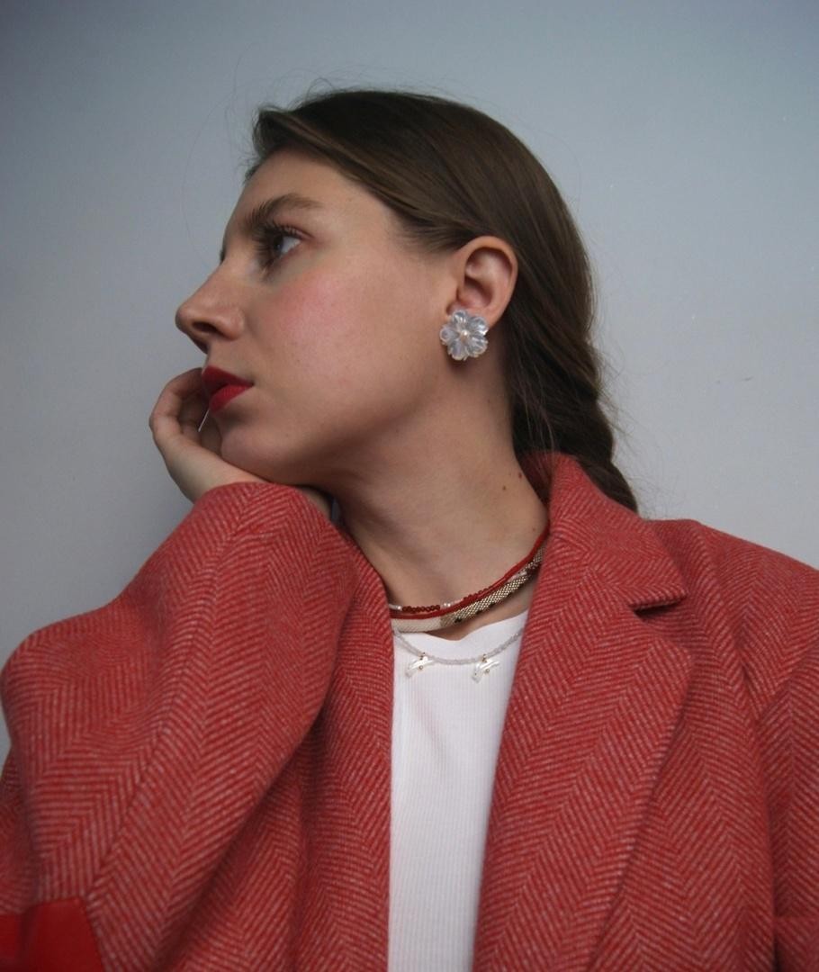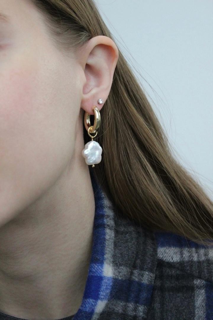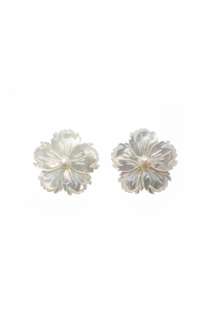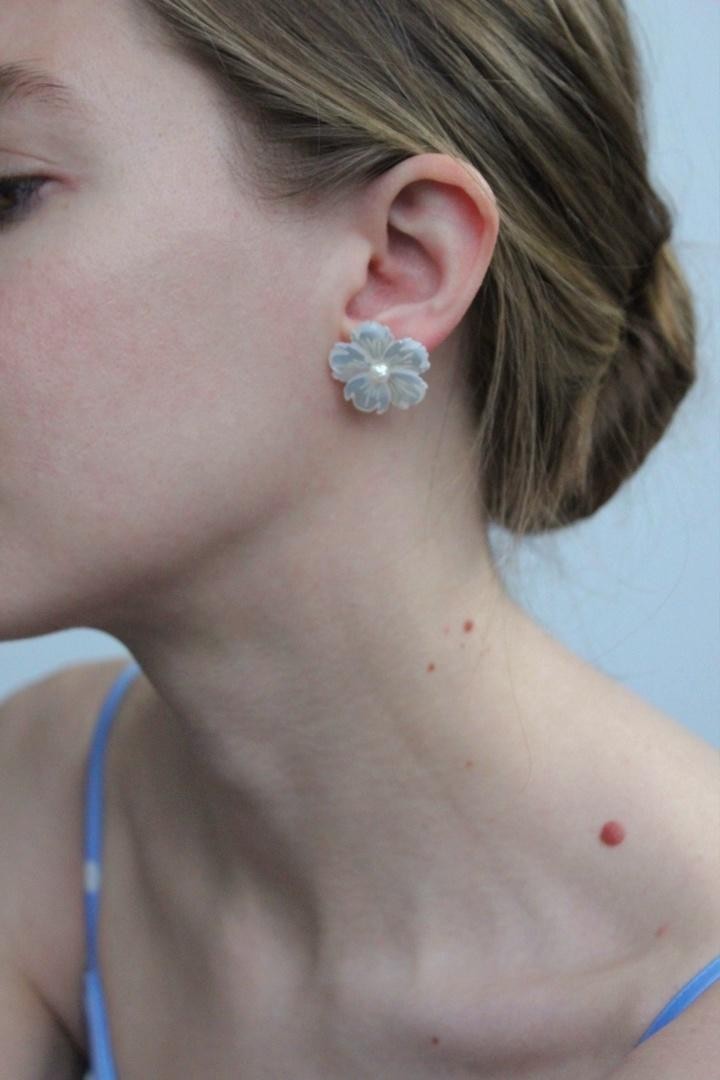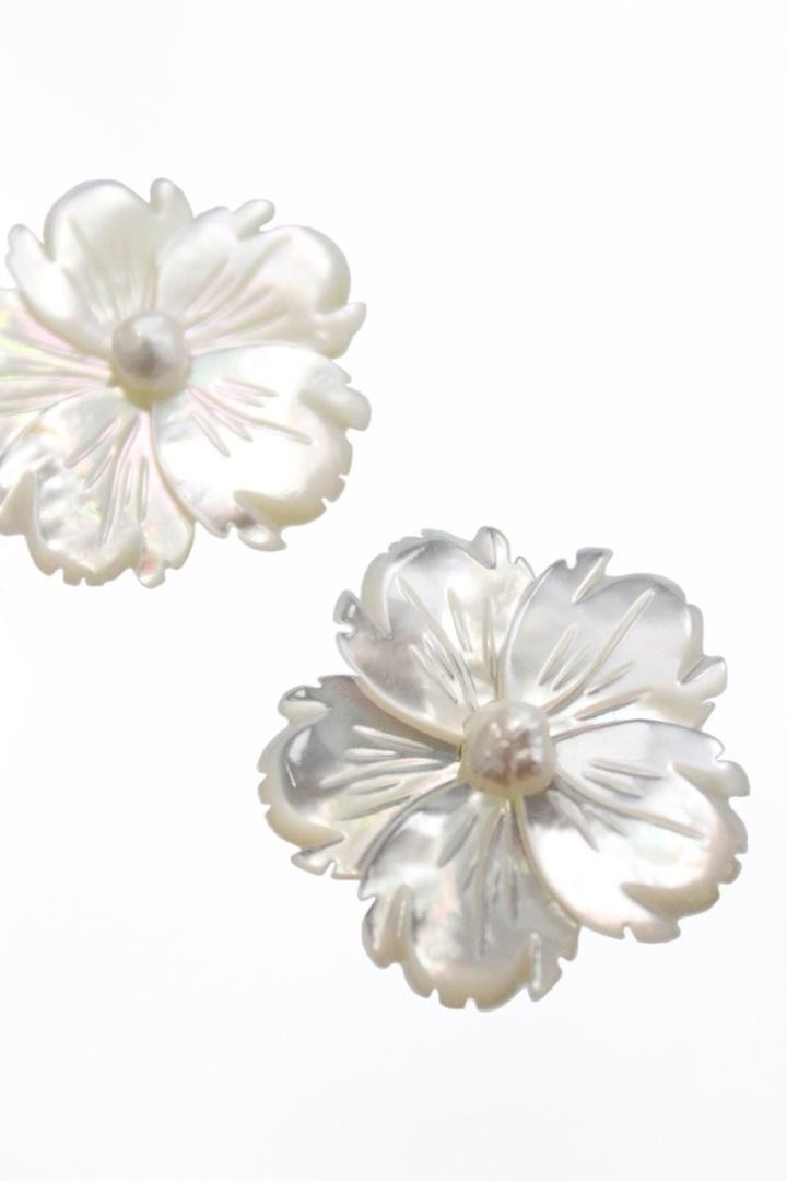 Парные пусеты из фигурного перламутра в виде цветка яблони. Диаметр 3,5см, фурнитура хирургическая сталь