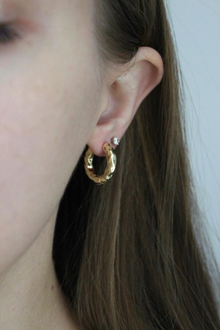 Базовые серьги-трансформеры круглой формы с мятой фактурой, которые можно стилизовать с помощью съёмных подвесок