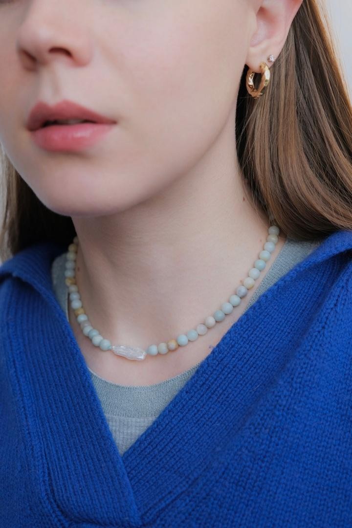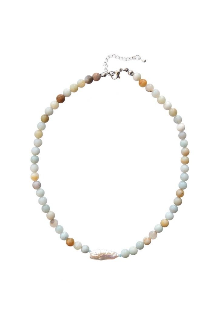 Чокер собран из натурального амазонита с акцентной жемчужиной в центре. Длина 36-41см<br /><br />При необходимости скорректировать длину, пожалуйста, напишите об этом в комментарии к заказу! Мы соберём чокер необходимого для вас размера бесплатно (бесплатное увеличение длины до 10см)