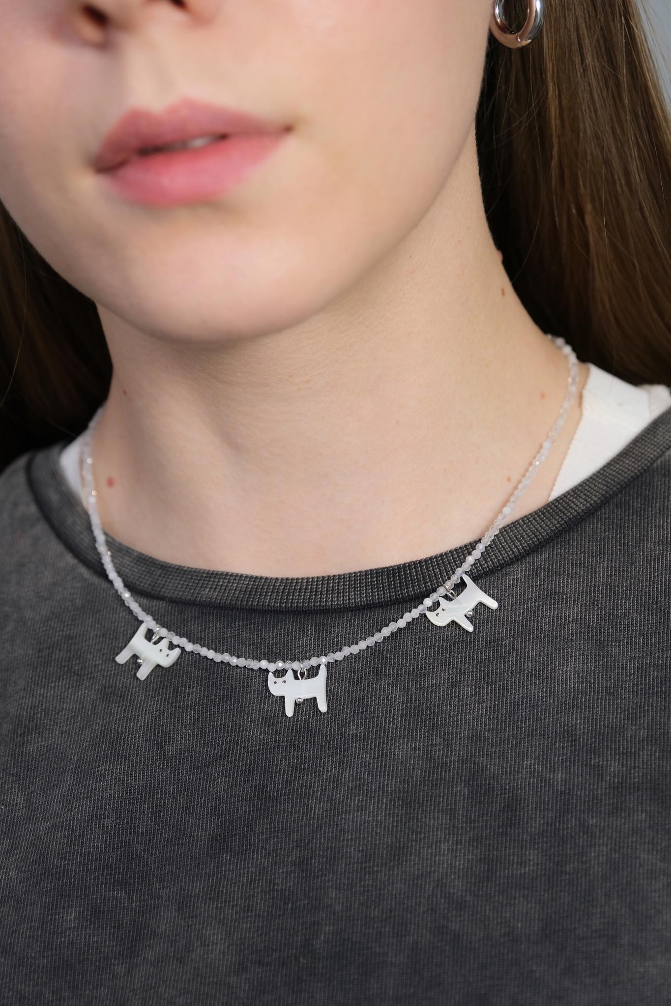Чокер из лунного камня с тремя перламутровыми котиками. Длина 36-41см<br /><br />При необходимости скорректировать длину, пожалуйста, напишите об этом в комментарии к заказу! Мы соберём чокер необходимого для вас размера бесплатно (бесплатное увеличение длины до 10см)
