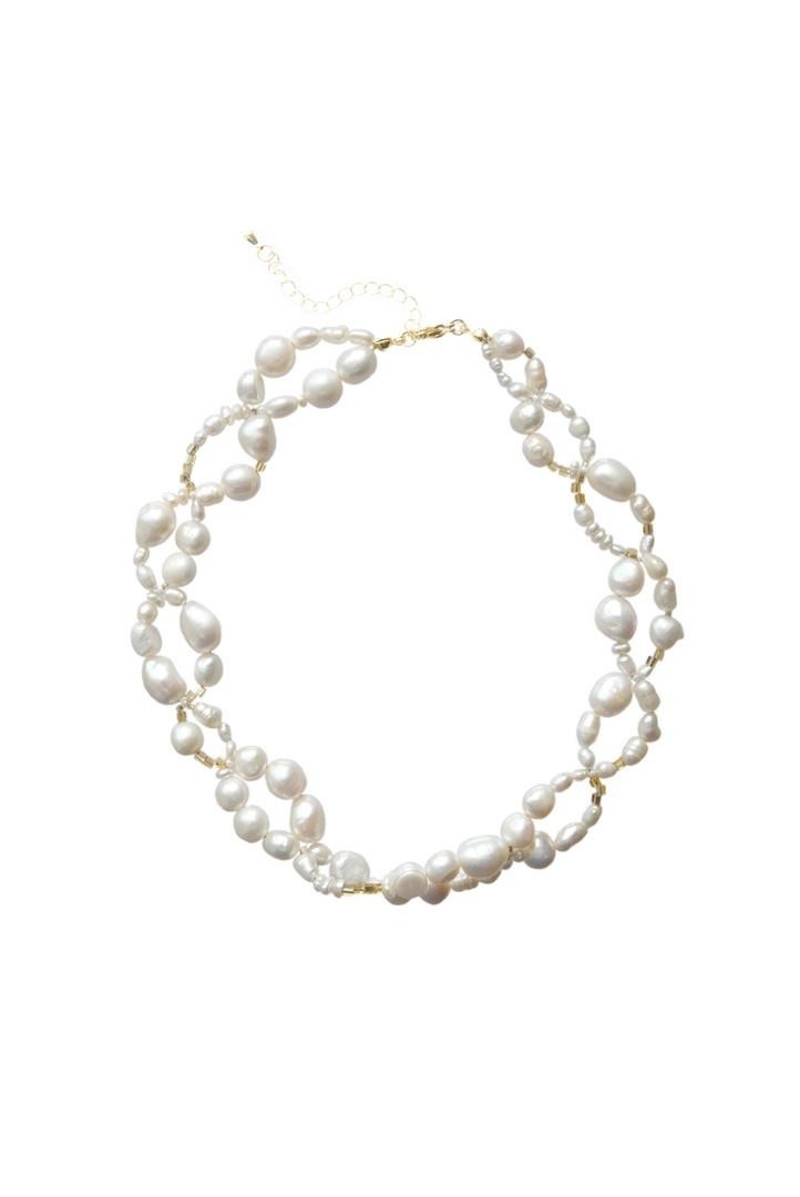 Эффектное колье из речного белого жемчуга разных форм и размеров, сплетённое в форме косы. Длина 36-41см<br /><br />При необходимости скорректировать длину, пожалуйста, напишите об этом в комментарии к заказу! Мы соберём чокер необходимого для вас размера бесплатно (бесплатное увеличение длины до 5см)