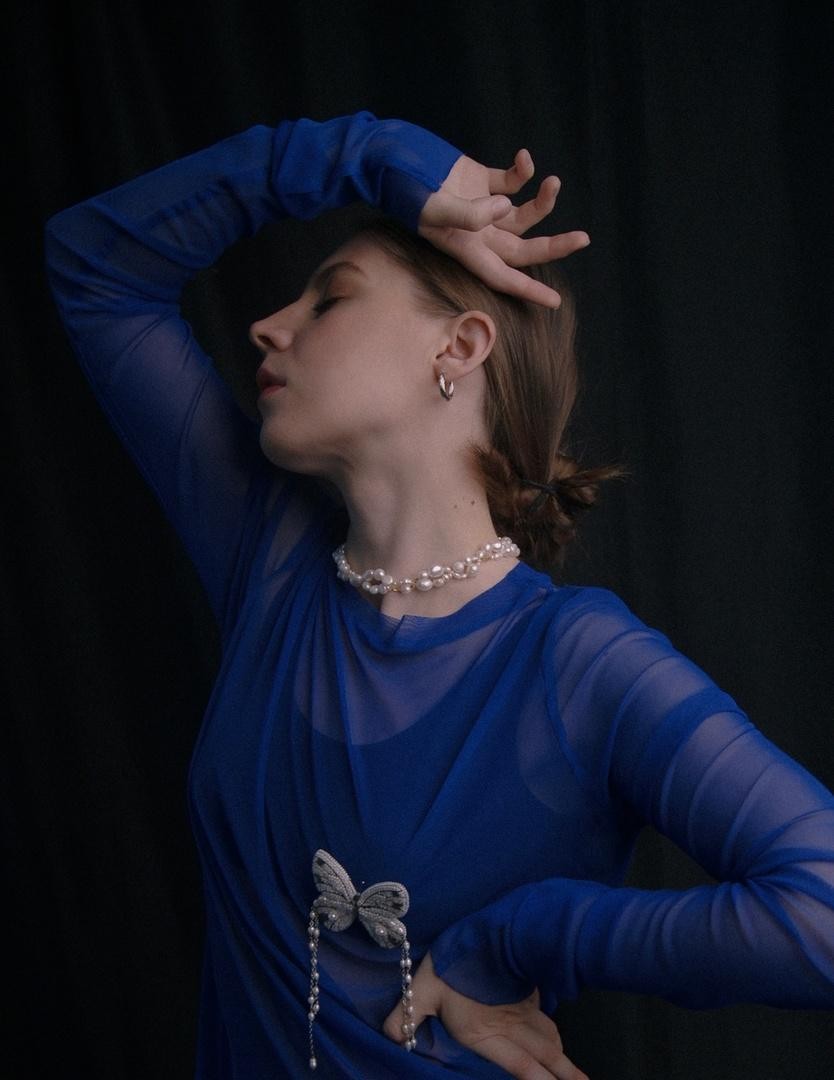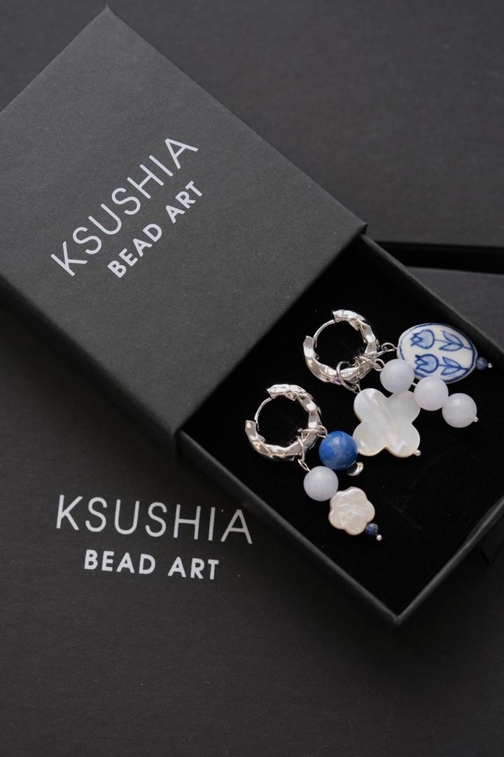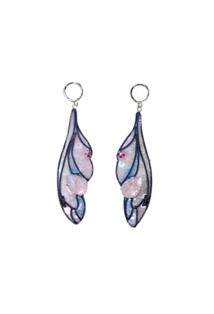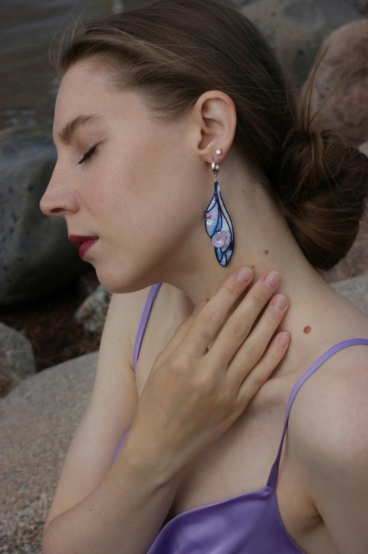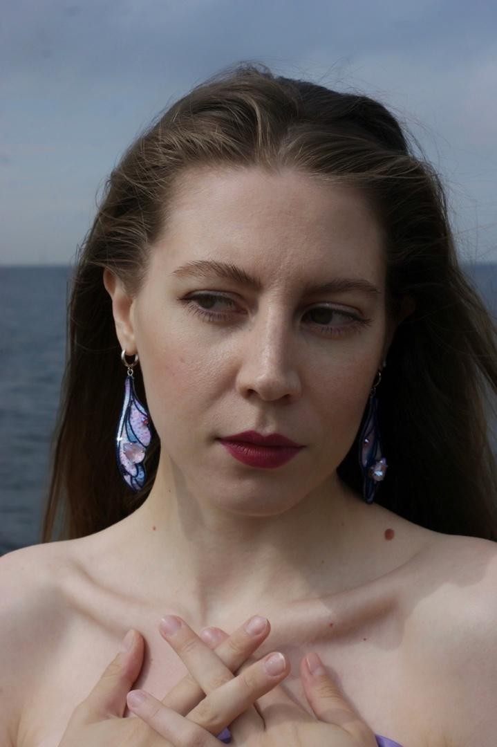 Серьги в виде крыльев прозрачной бабочки Грета Ото, с вышивкой из итальянских пайеток и камней Swarovski