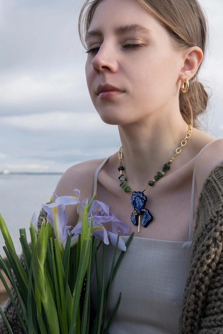 Колье-трансформер, вдохновлённое картиной Винсента Ван Гога, из натурального нефрита и серпентина со съёмной подвеской - ирисом. Колье можно носитть любой стороной, надевать ирис на любой участок колье, а также носить его на других чокерах, цепочках и серьгах. Максимальная длина колье 47см<br /><br />При необходимости скорректировать длину, пожалуйста, напишите об этом в комментарии к заказу! Мы соберём колье необходимого для вас размера бесплатно (бесплатное увеличение длины до 10см)