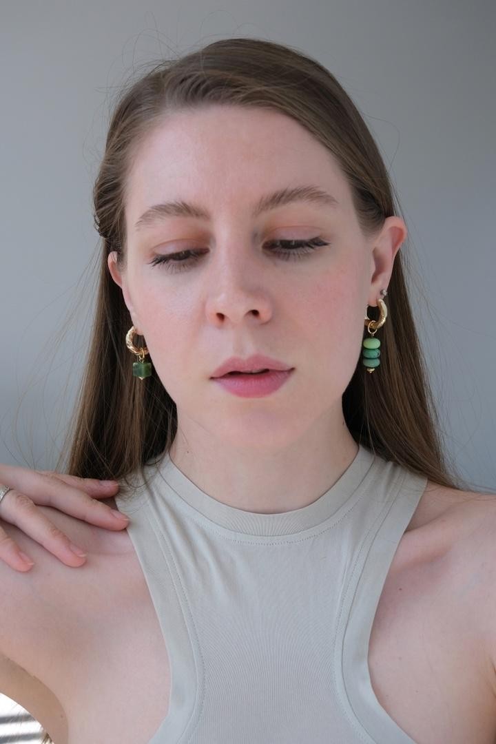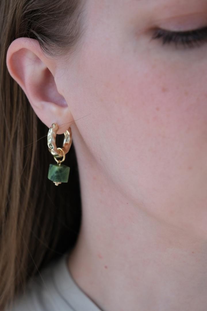 Подвеска к серьгам-трансформерам, чокерам и колье из кубической бусины натурального камня серпентина травяного зелёного цвета