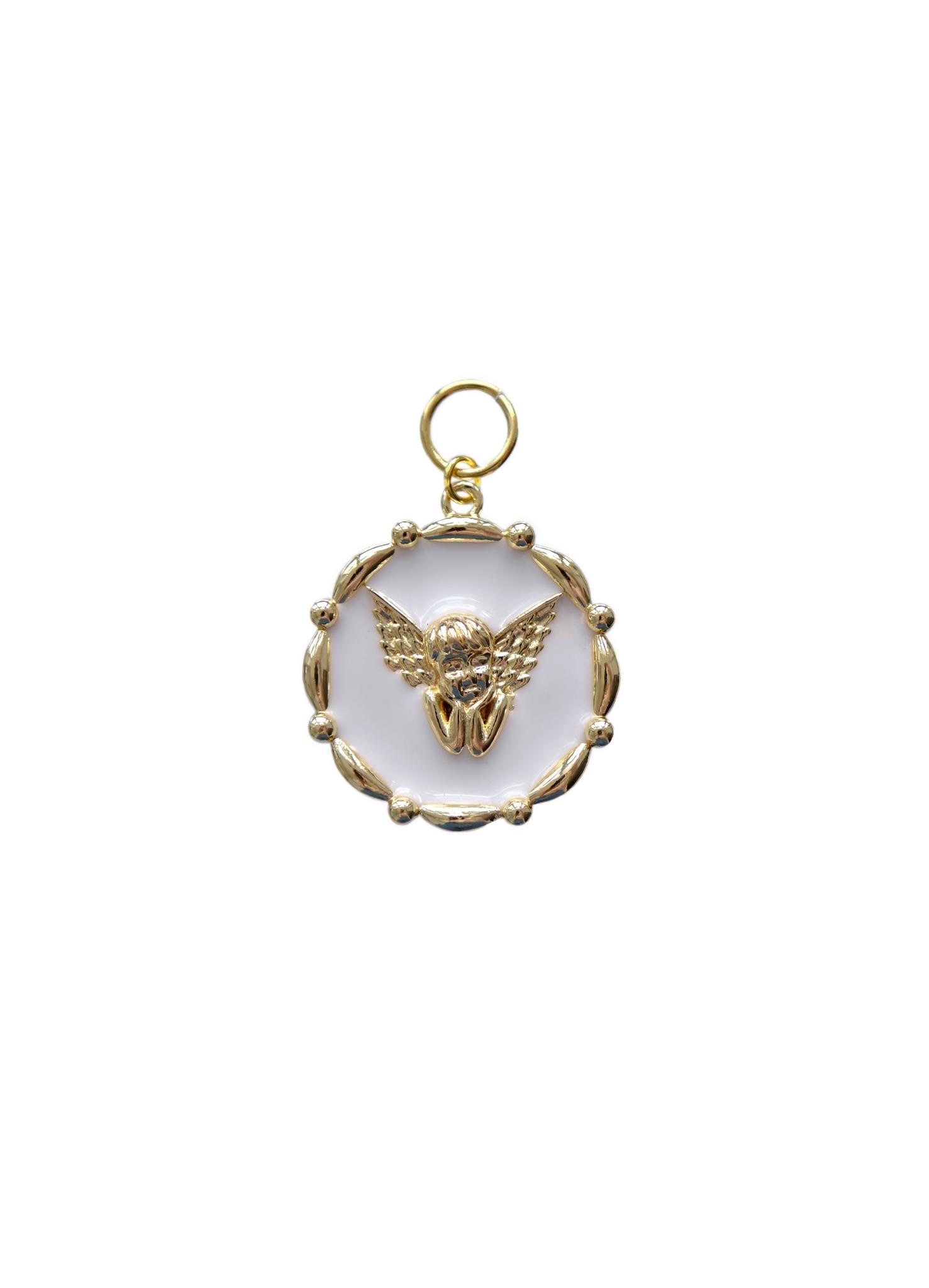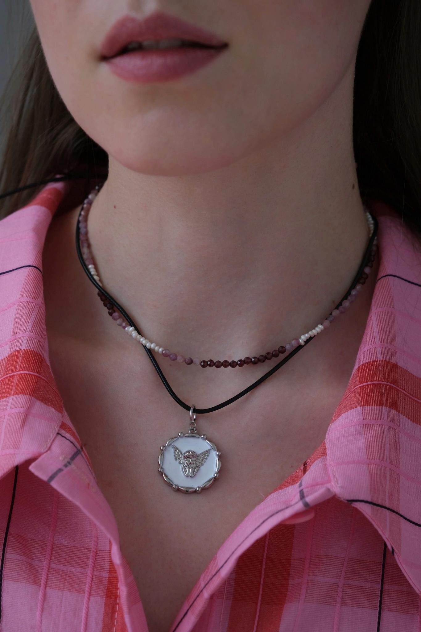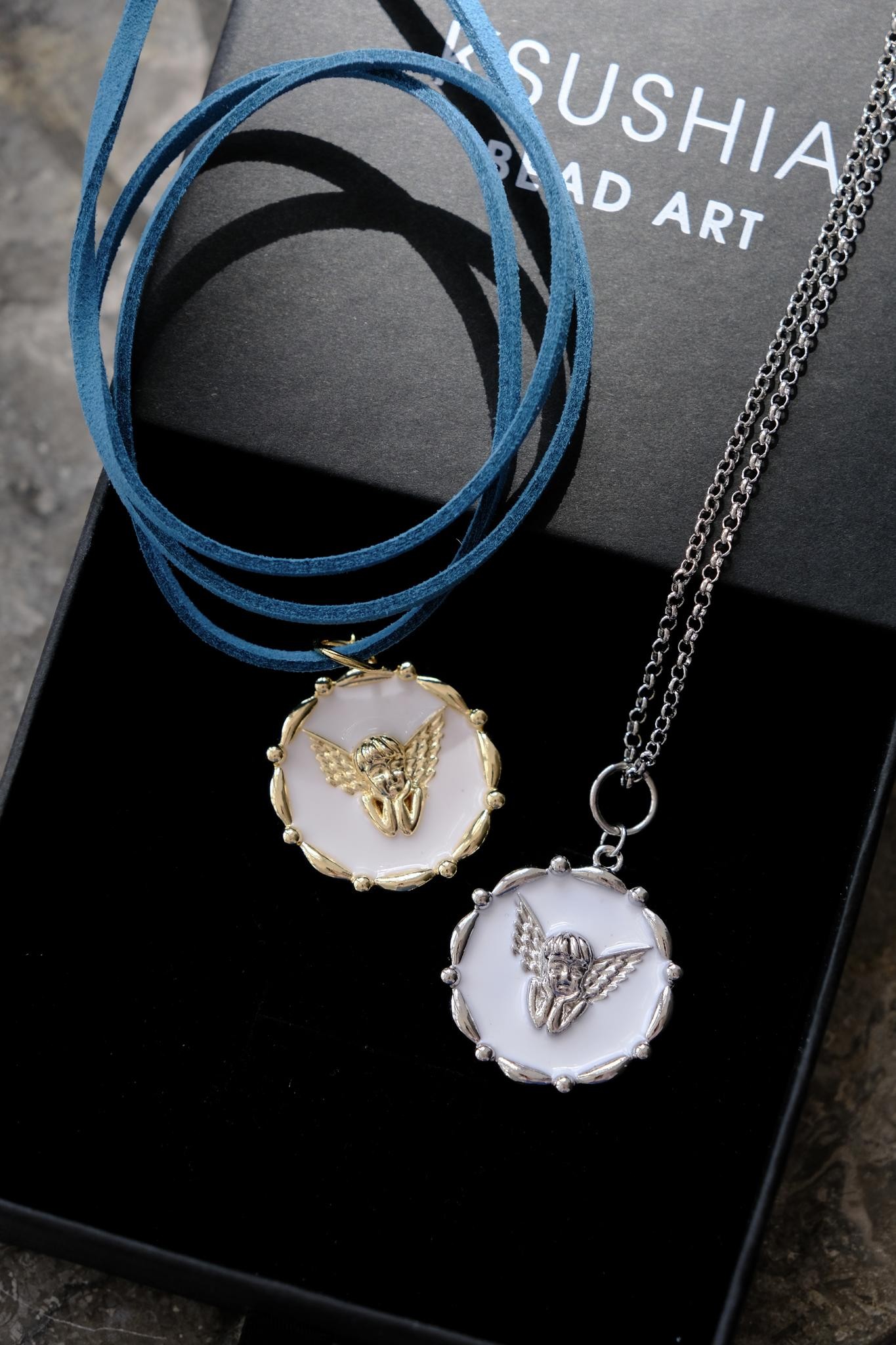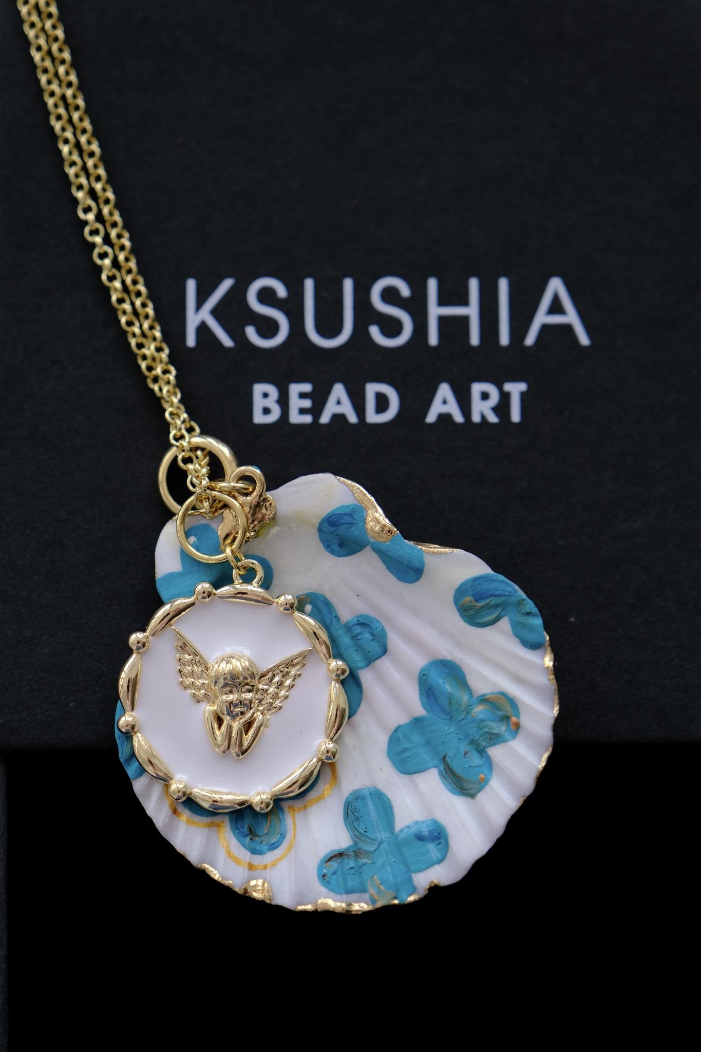 Подвеска-кулон с изображением ангела на эмали на тонкой цепочке. Подвеску можно снять и носить на чокерах и серьгах-трансформерах, собирать многослойные комплекты с колье, чокерами и цепочкой.