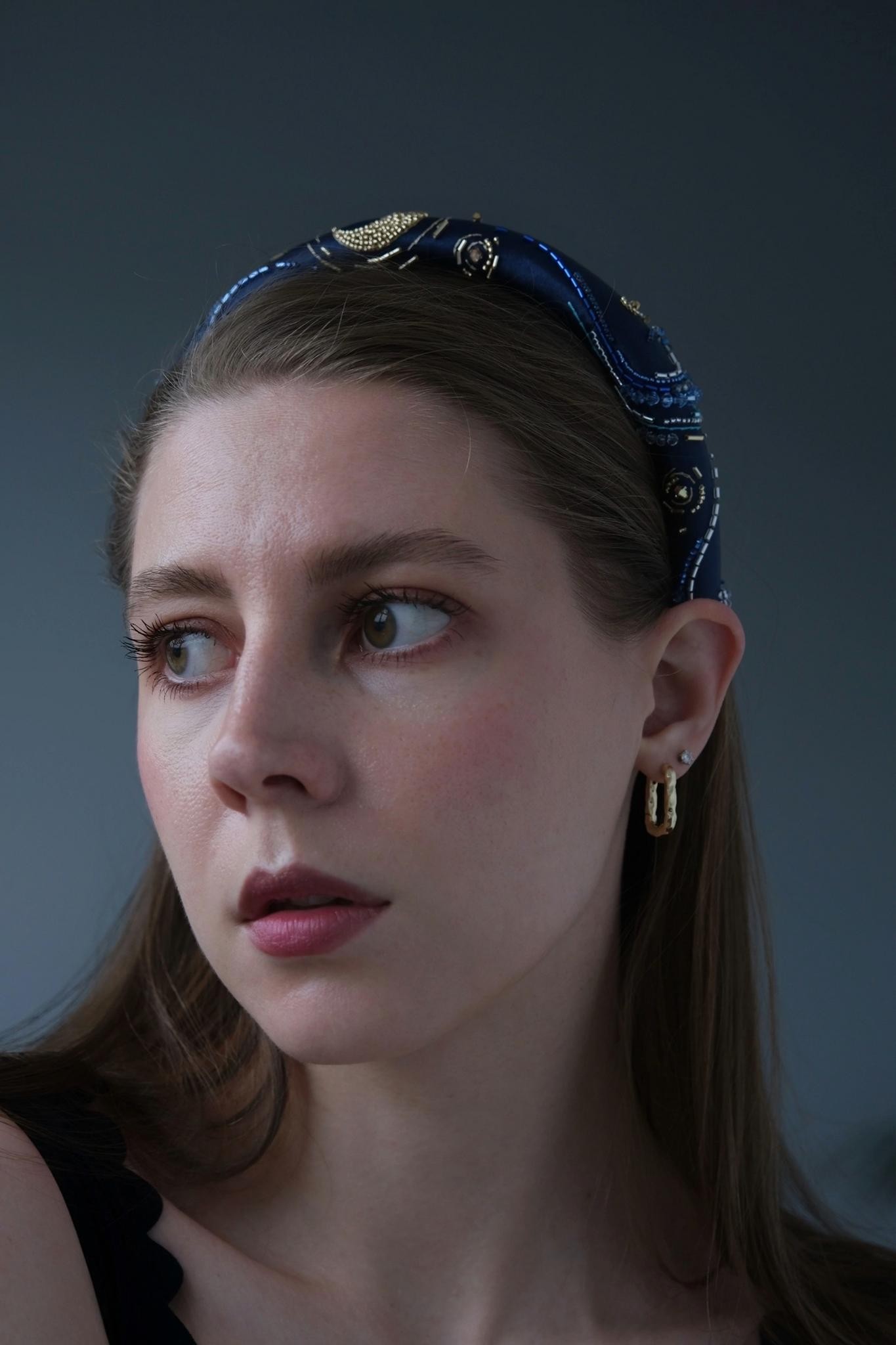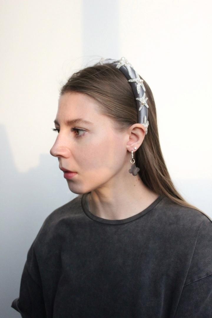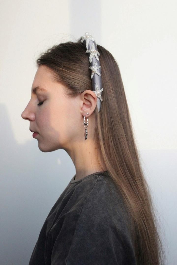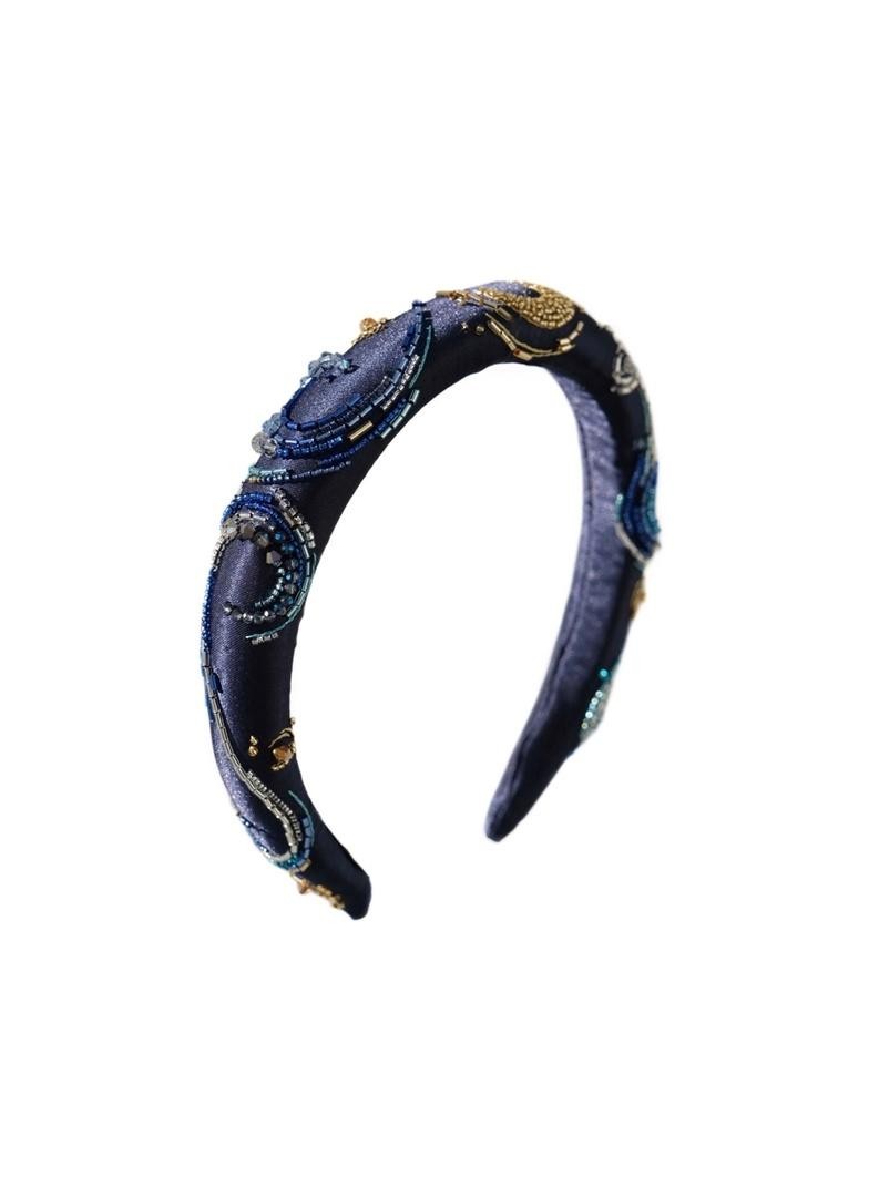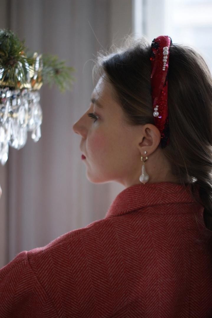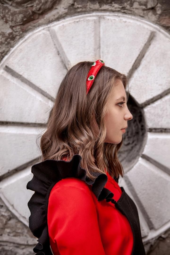 Необычный ободок с вышивкой японским ювелирным бисером, итальянскими пайетками и жемчужинами Swarovski на бархате Ширина ободка 2 см, высота 1,7см. Чтобы выбрать определённый цвет пайеток для зрачков, напишите нам об этом в комментарии к заказу.