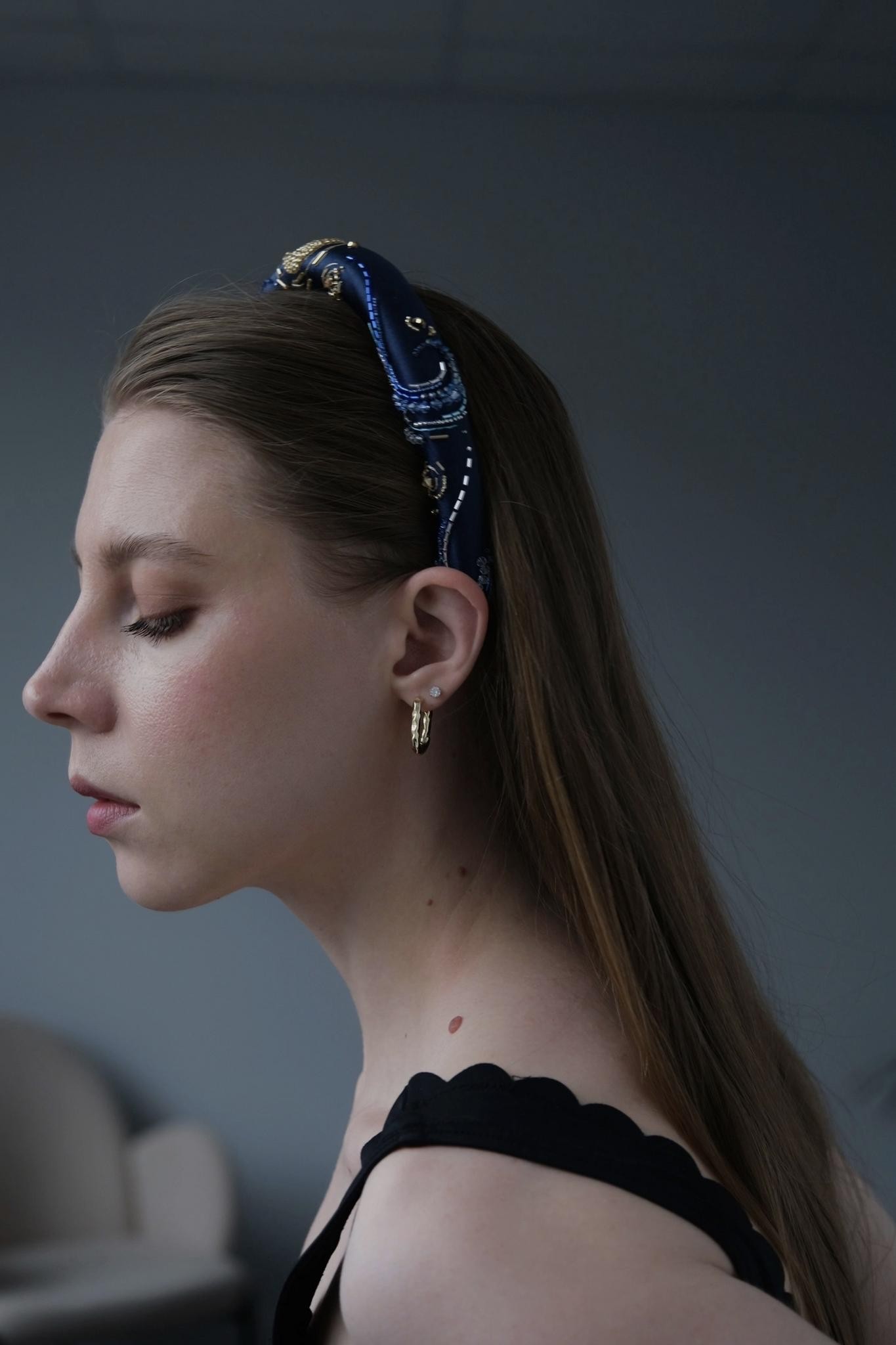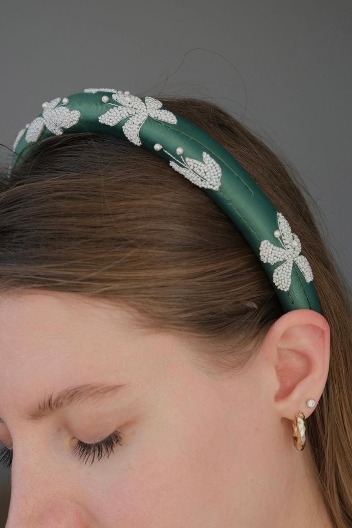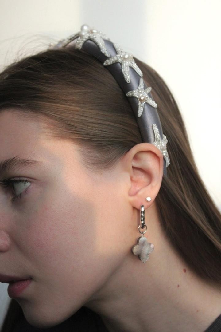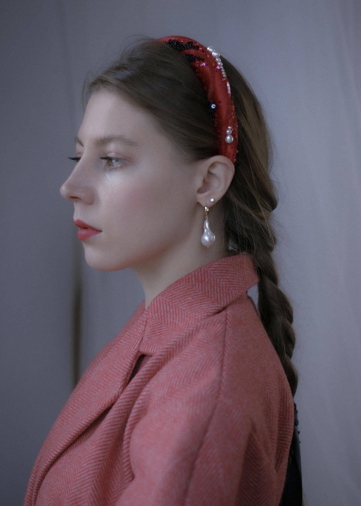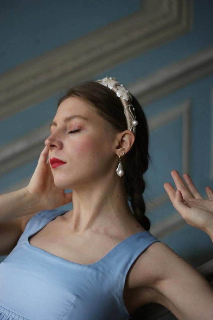 Необычный ободок с вышивкой японским ювелирным бисером, итальянскими пайетками и жемчужинами Swarovski на бархате Ширина ободка 2 см, высота 1,7см. Чтобы выбрать определённый цвет пайеток для зрачков, напишите нам об этом в комментарии к заказу.