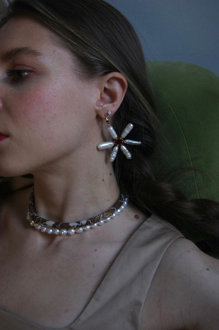Моноклипса из натурального жемчуга и камней Swarovski