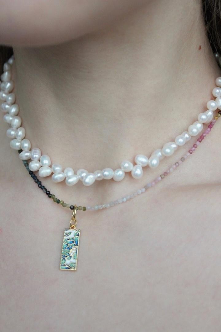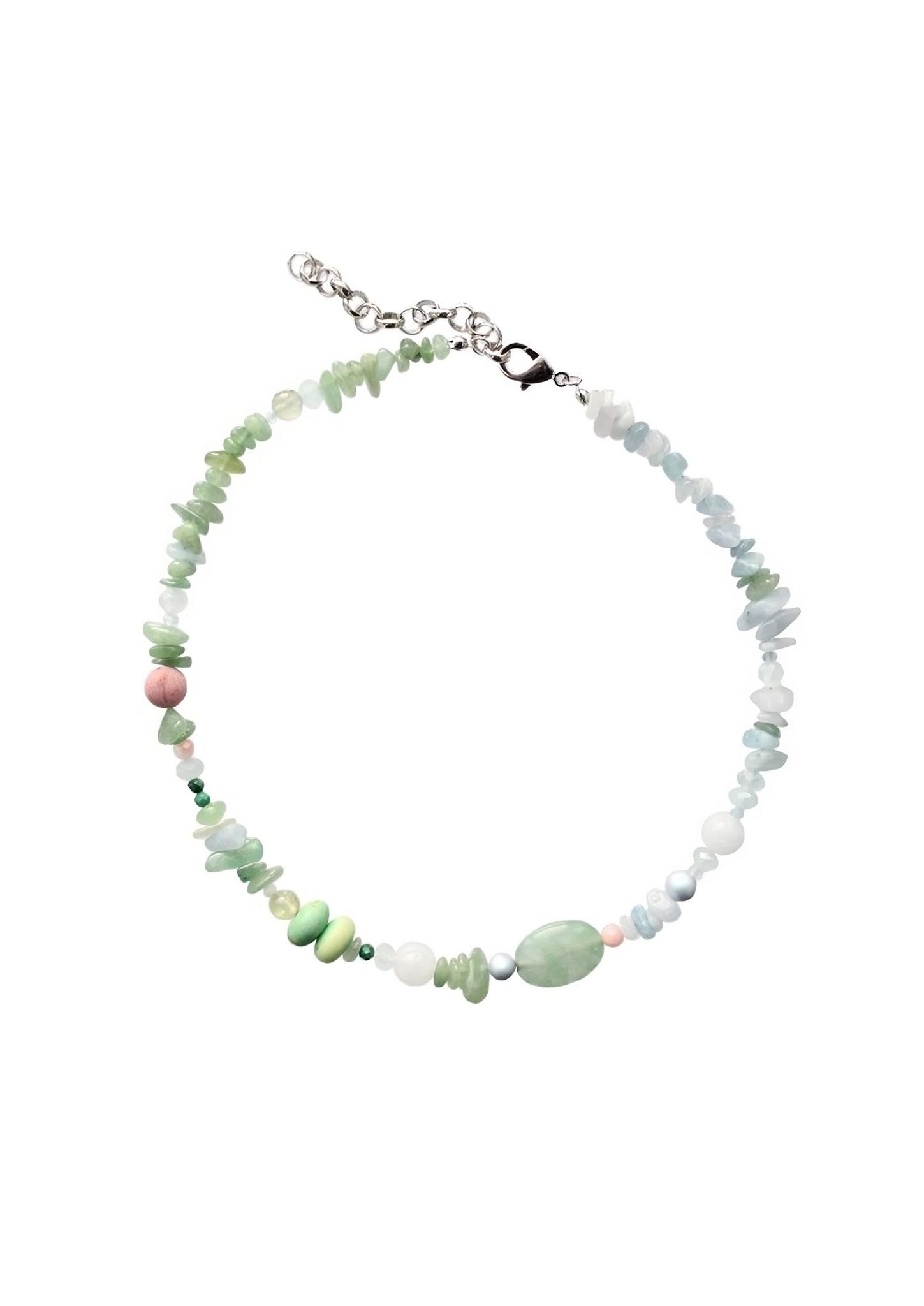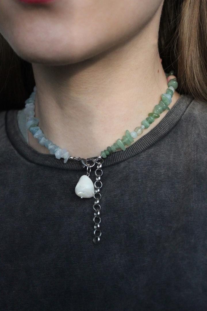 Колье художественно собрано из натуральных камней (нефрита, малахита, подрнита, аквамарина, пренита, хризопраза, кварца) и жемчуга Swarovski, повторяя знаменитую картину Клода Моне. Носить колье-трансформер можно любой стороной, а также цепочкой вперед, надевать подвески на карабин. Длина 36-41см<br /><br />При необходимости скорректировать длину, пожалуйста, напишите об этом в комментарии к заказу! Мы соберём чокер необходимого для вас размера бесплатно (бесплатное увеличение длины до 5см)