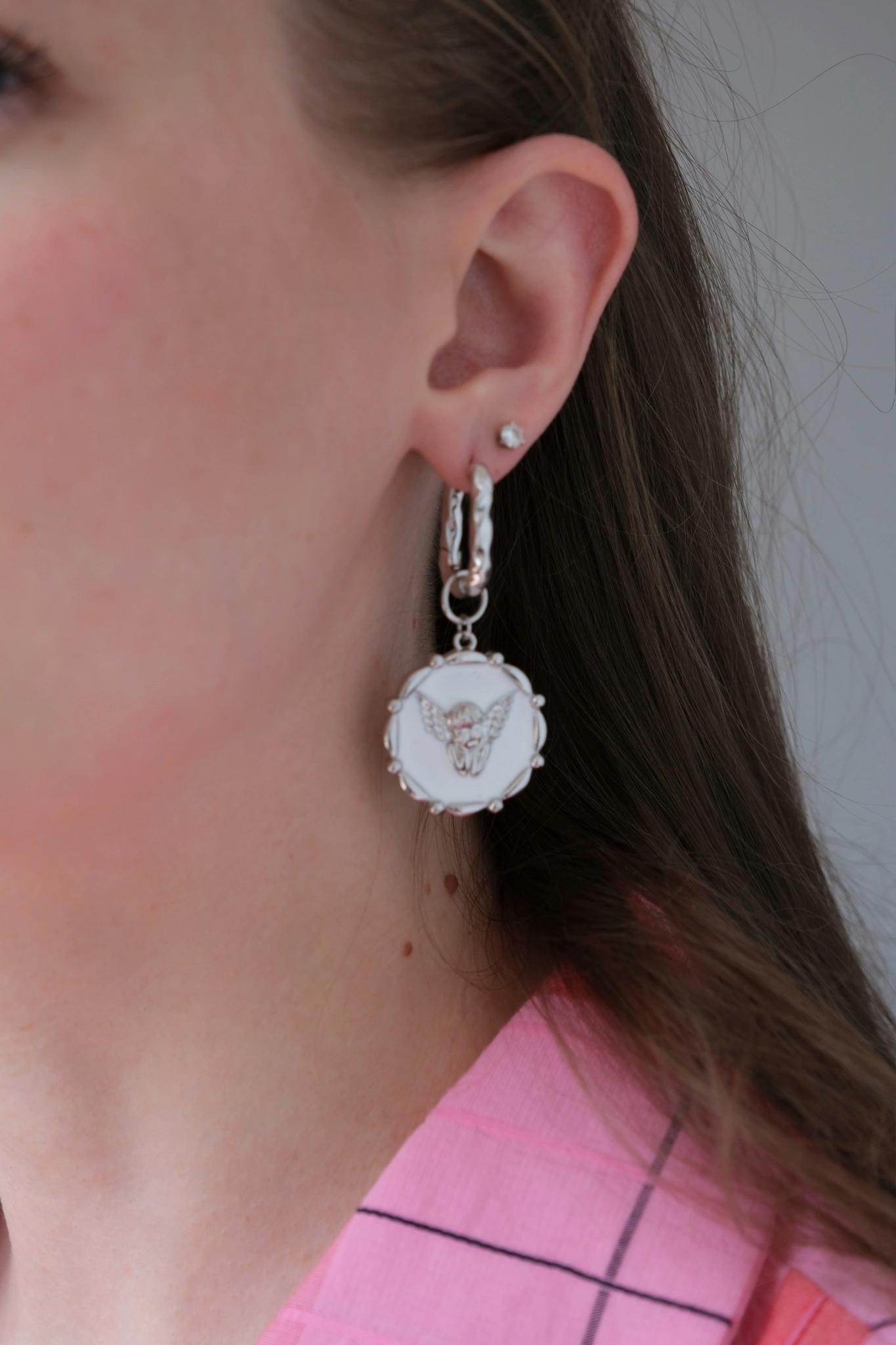 Подвеска-кулон с изображением ангела на эмали на тонкой цепочке. Подвеску можно снять и носить на чокерах и серьгах-трансформерах, собирать многослойные комплекты с колье, чокерами и цепочкой.