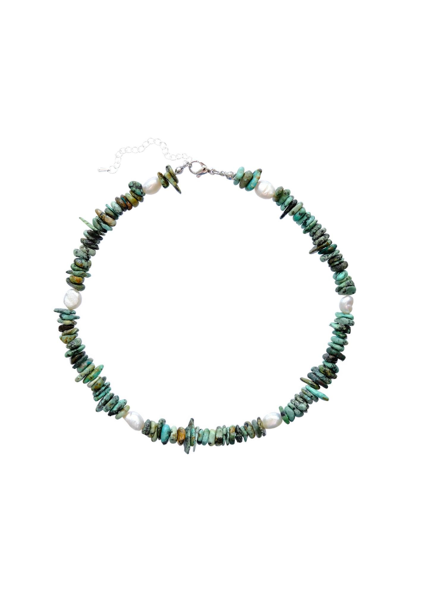 Чокер из натурального апатита цвета тёплого индийского моря с акцентной жемчужиной. Длина 36-41см<br /><br />При необходимости скорректировать длину, пожалуйста, напишите об этом в комментарии к заказу! Мы соберём чокер необходимого для вас размера бесплатно (бесплатное увеличение длины до 10см)