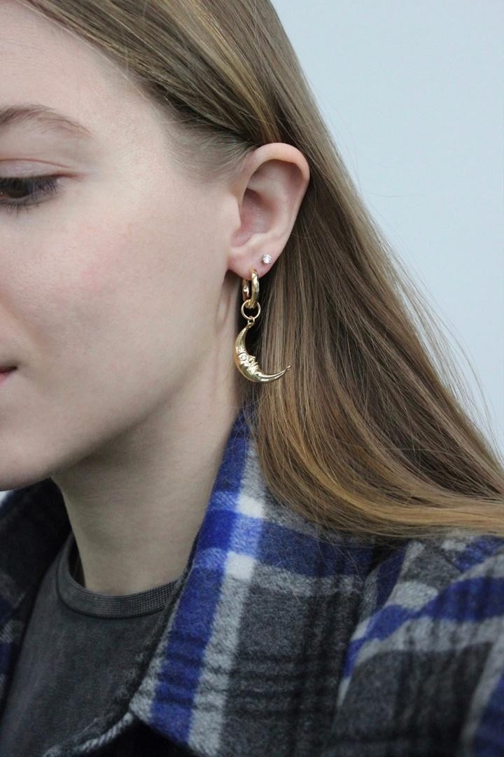 Базовые серьги-трансформеры круглой формы с мятой фактурой, которые можно стилизовать с помощью съёмных подвесок