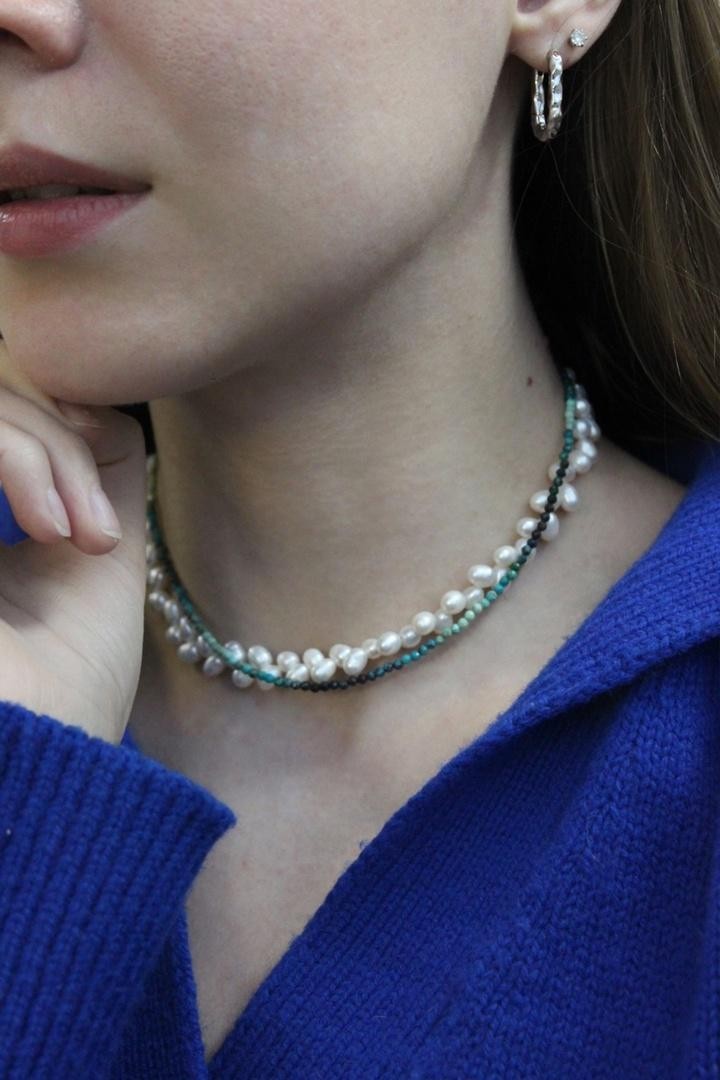 Колье художественно собрано из натуральных камней (нефрита, малахита, подрнита, аквамарина, пренита, хризопраза, кварца) и жемчуга Swarovski, повторяя знаменитую картину Клода Моне. Носить колье-трансформер можно любой стороной, а также цепочкой вперед, надевать подвески на карабин. Длина 36-41см<br /><br />При необходимости скорректировать длину, пожалуйста, напишите об этом в комментарии к заказу! Мы соберём чокер необходимого для вас размера бесплатно (бесплатное увеличение длины до 5см)