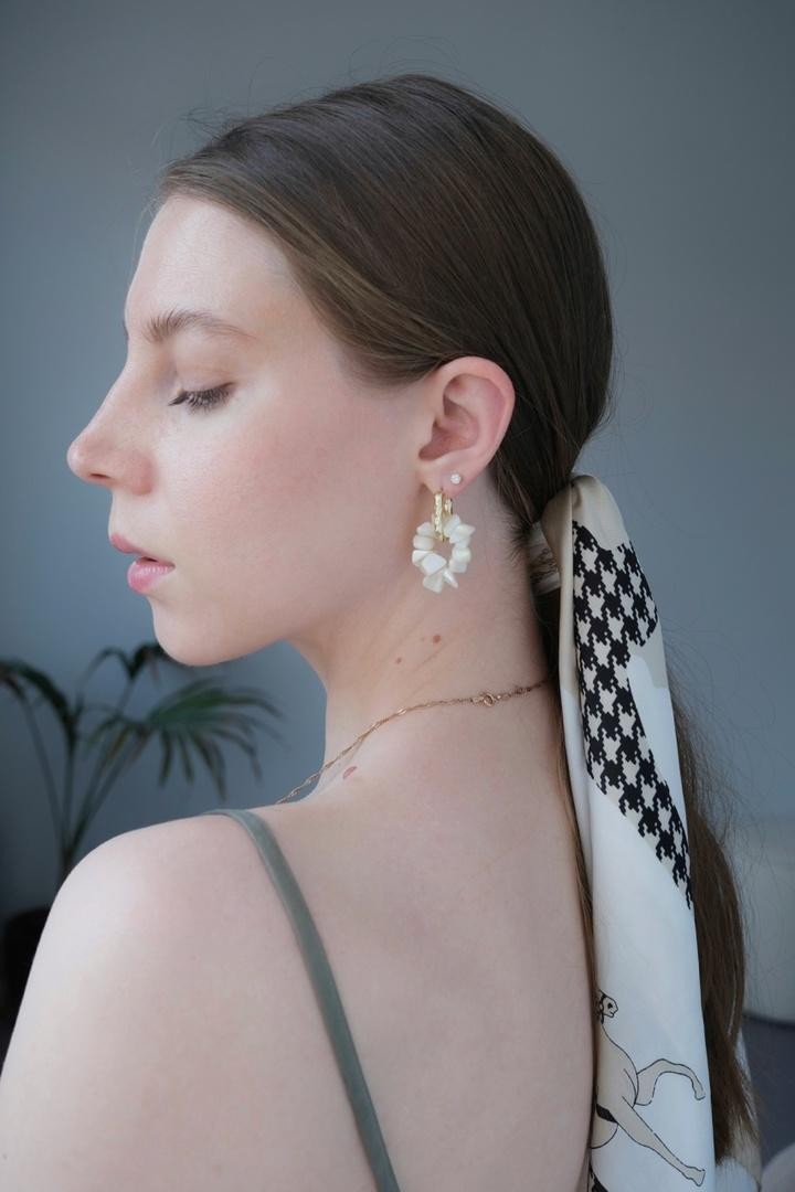 Базовые серьги-трансформеры круглой формы с чешуйчатой фактурой , которые можно стилизовать с помощью съёмных подвесок