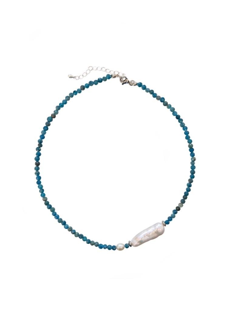 Чокер из натурального апатита цвета тёплого индийского моря с акцентной жемчужиной. Длина 36-41см<br /><br />При необходимости скорректировать длину, пожалуйста, напишите об этом в комментарии к заказу! Мы соберём чокер необходимого для вас размера бесплатно (бесплатное увеличение длины до 10см)
