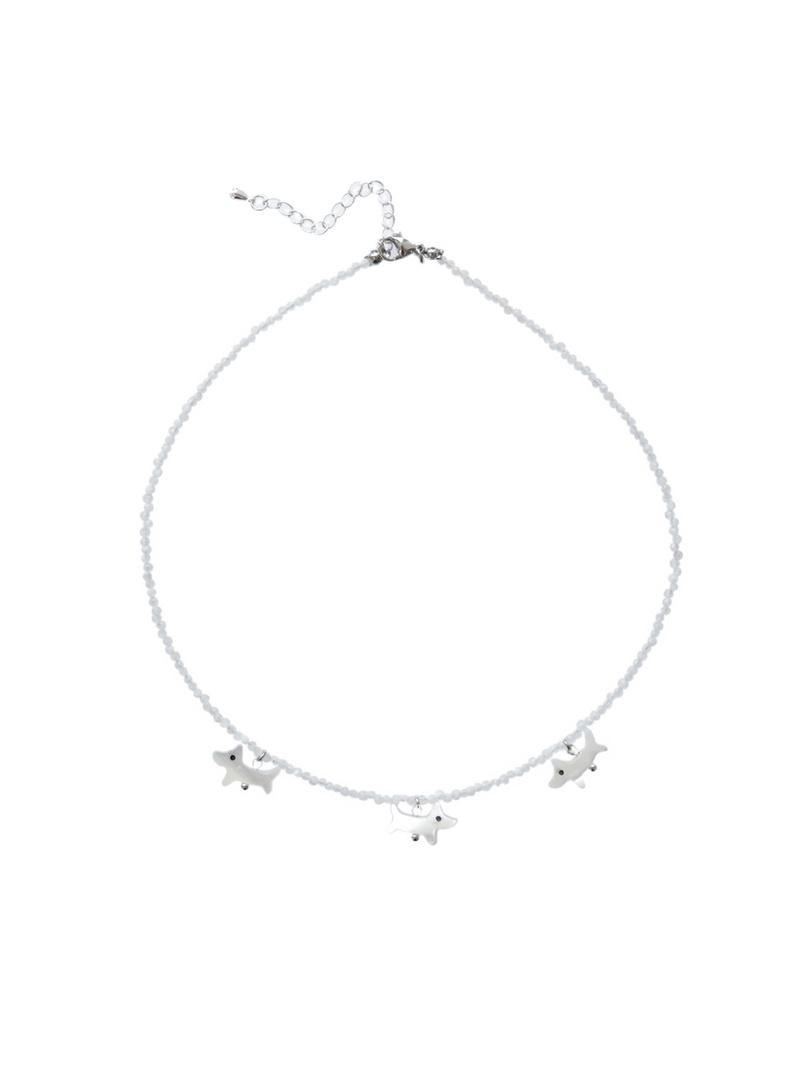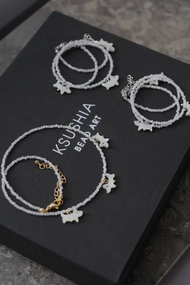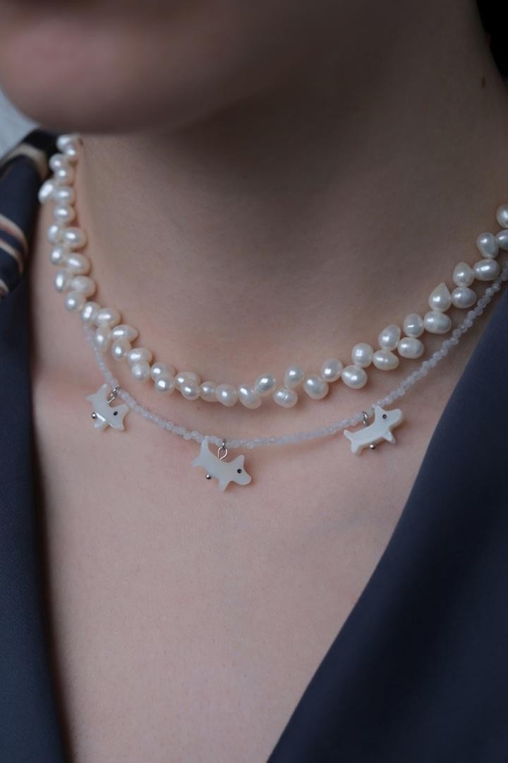 Чокер из лунного камня с тремя перламутровыми пёсиками. Длина 36-41см<br />При необходимости скорректировать длину, пожалуйста, напишите об этом в комментарии к заказу! Мы соберём чокер необходимого для вас размера бесплатно (бесплатное увеличение длины до 10см)