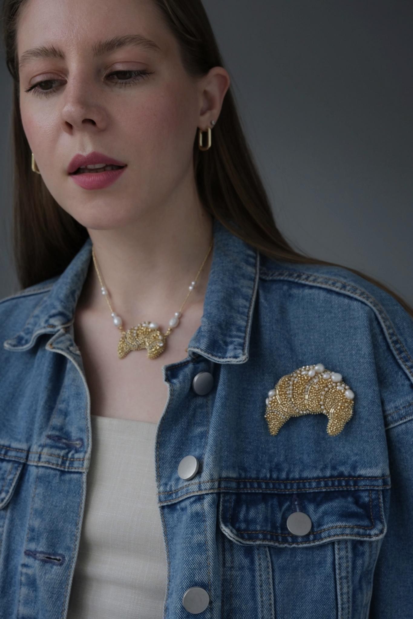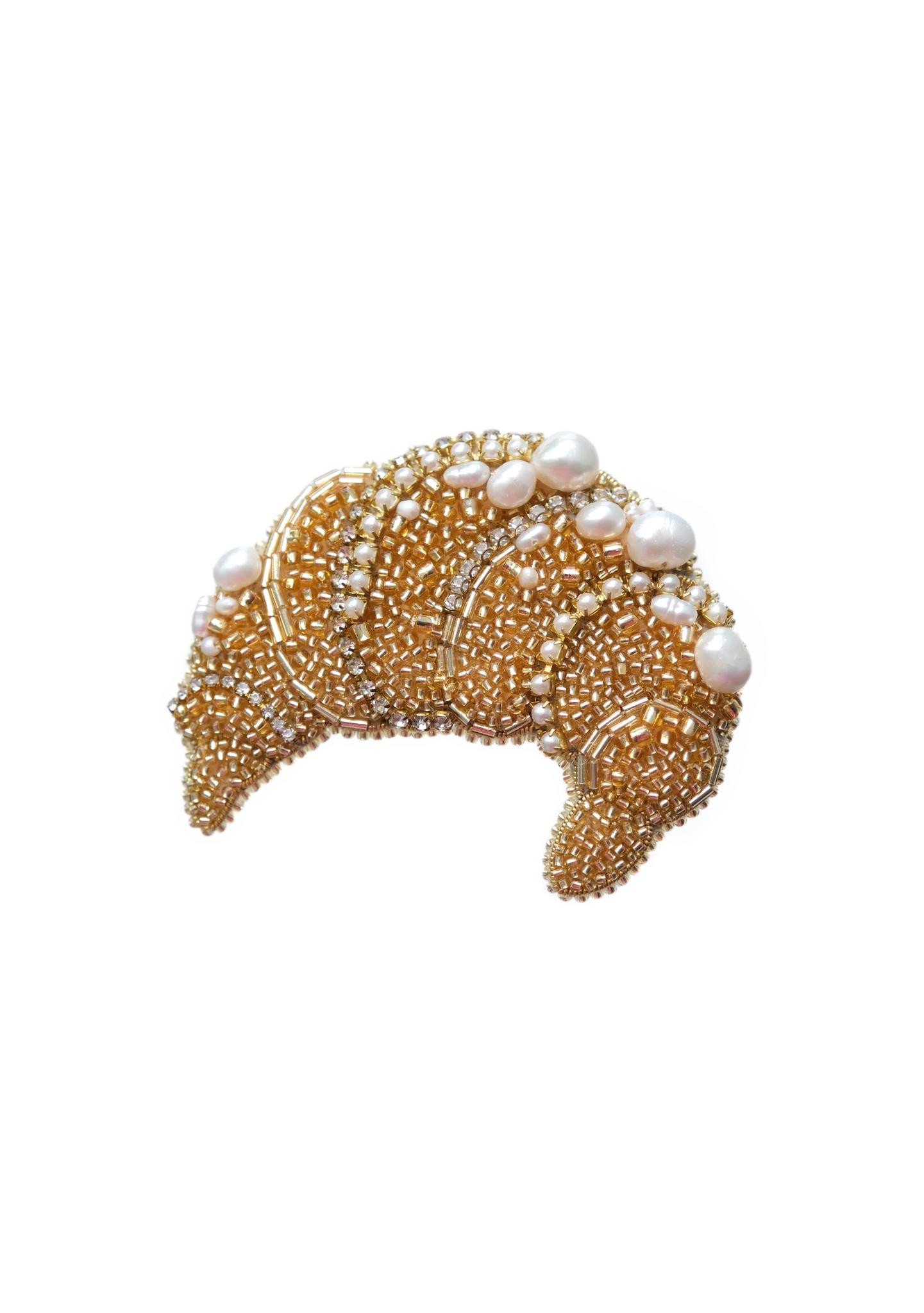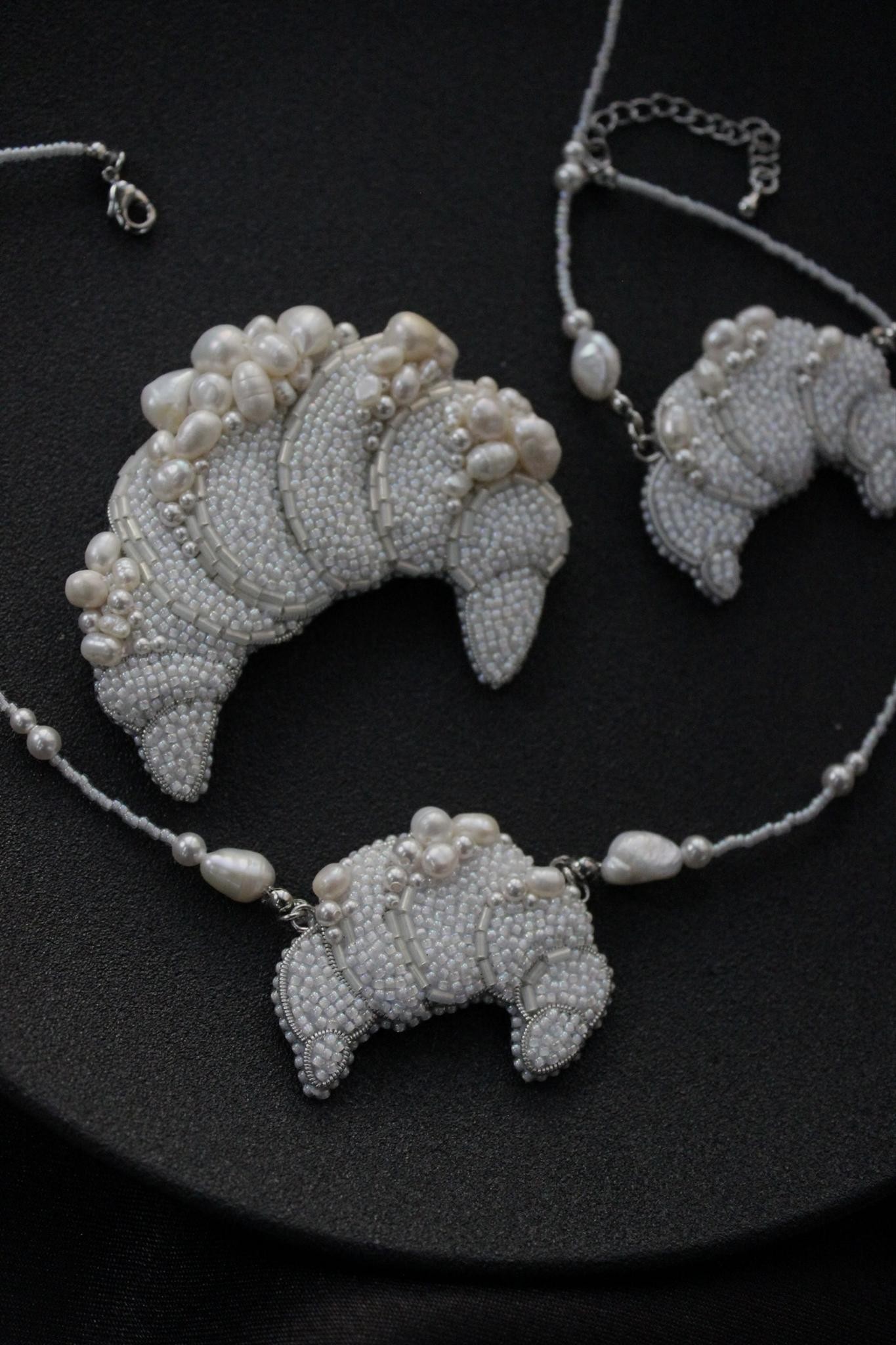 Брошь с вышивкой из натурального белого жемчуга и японского ювелирного бисера. Высота 5,5см, ширина 6,5см