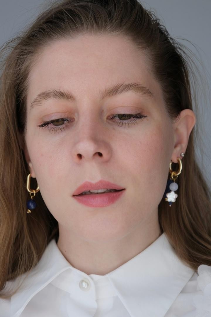 Подвеска к серьгам-трансформерам и чокерам из натурального белого жемчуга, голубого кварца и лазурита. У каждой жемчужины уникальная форма и цветовые переливы