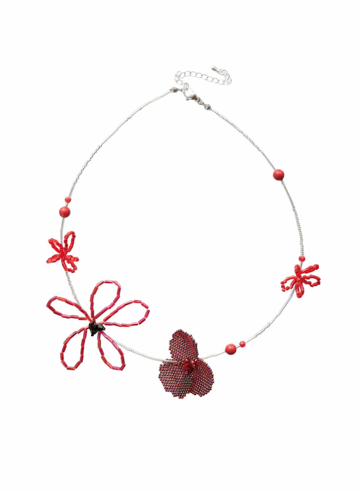 Акцентное колье из бисерных полевых цветов: мак, вербена, астра. Длина 42-48 см<br /><br />При необходимости скорректировать длину, пожалуйста, напишите об этом в комментарии к заказу! Мы соберём чокер необходимого для вас размера бесплатно (бесплатное увеличение длины до 10см)