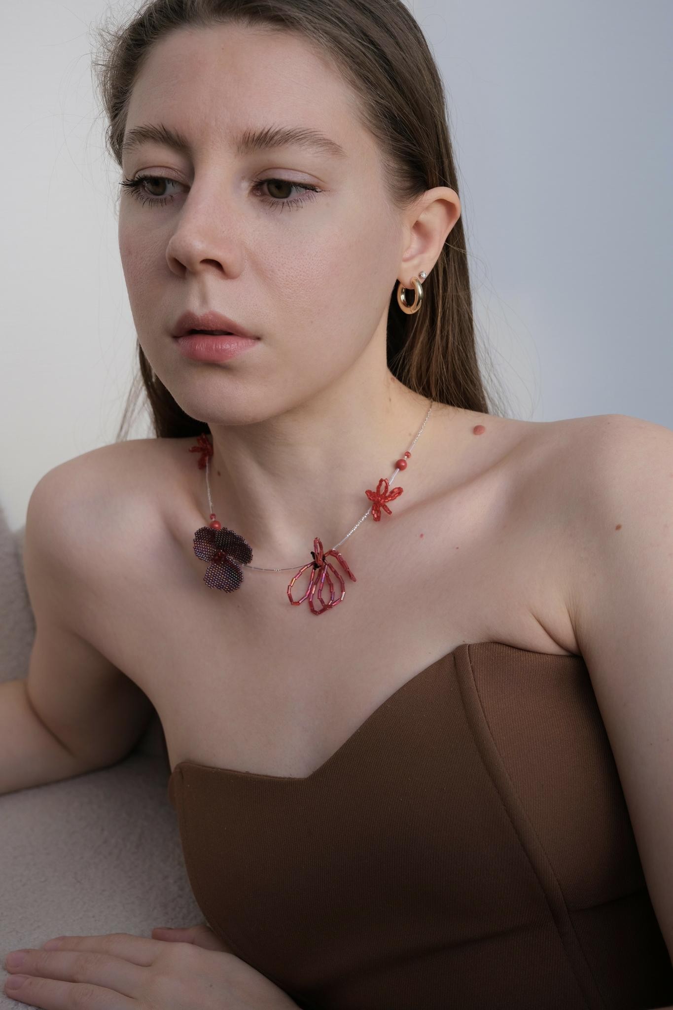 Чокер из японских бусин в цветах брусничной ягоды. Длина 36-41см<br /><br />При необходимости скорректировать длину, пожалуйста, напишите об этом в комментарии к заказу! Мы соберём чокер необходимого для вас размера бесплатно (бесплатное увеличение длины до 10см)