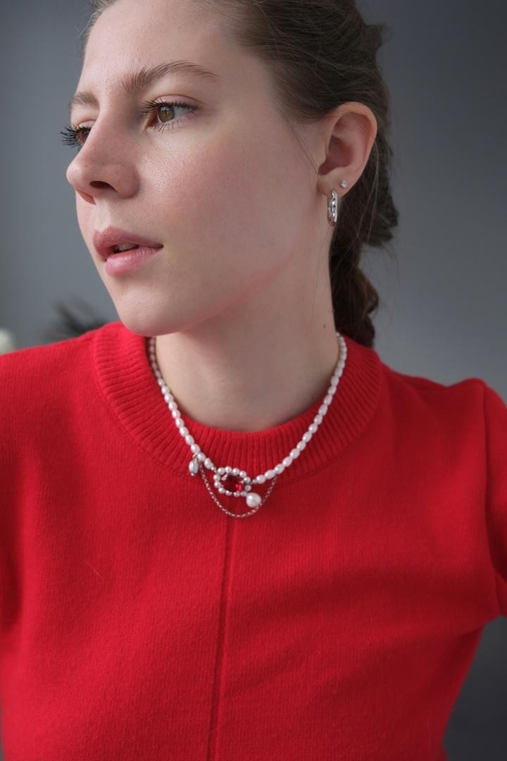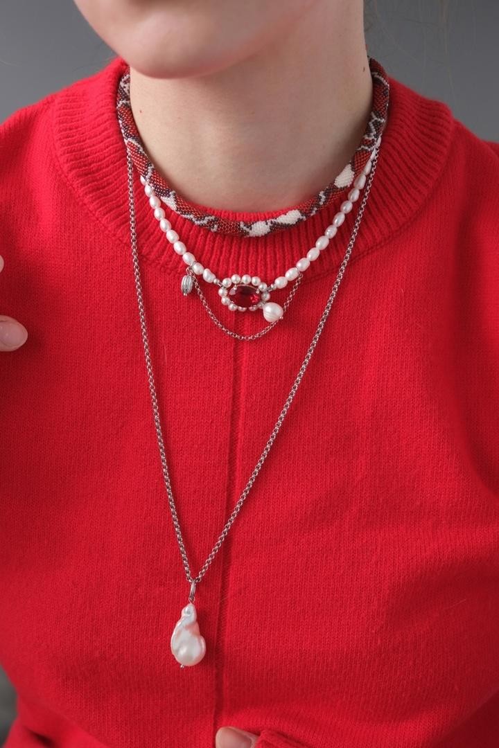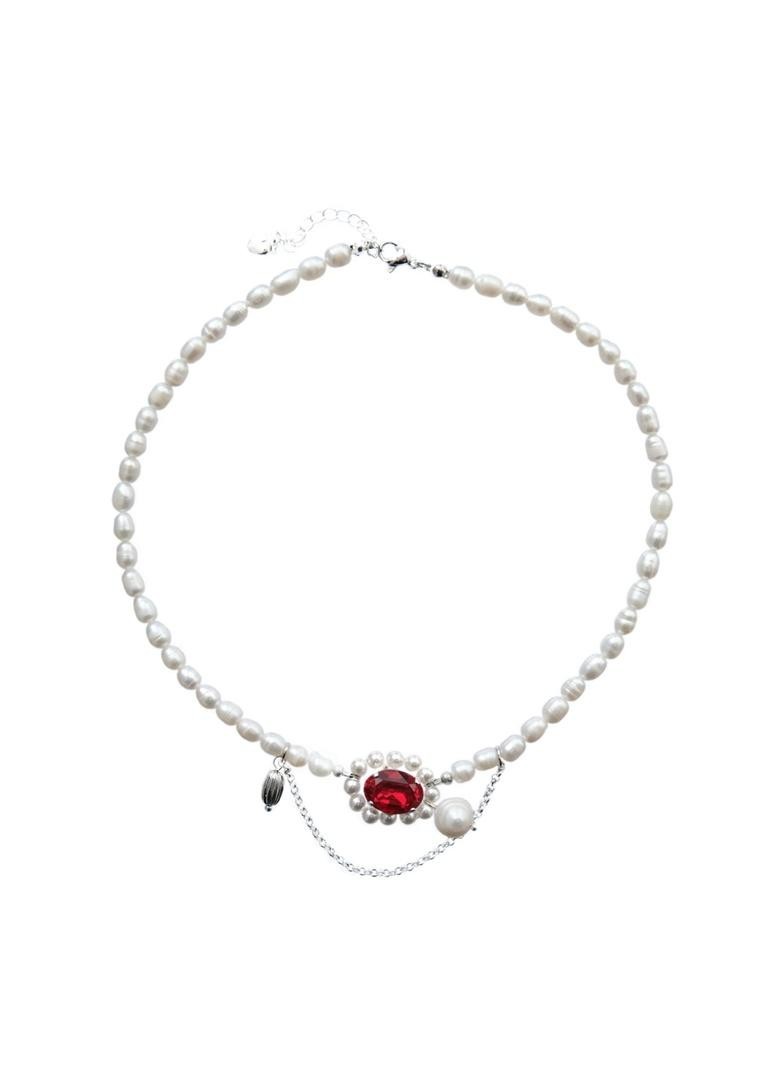 Чокер из натурального речного жемчуга с акцентным красным камнем Swarovski, обрамленным также жемчугом Swarovski. Длина 36-41 см<br /><br />При необходимости скорректировать длину, пожалуйста, напишите об этом в комментарии к заказу! Мы соберём чокер необходимого для вас размера бесплатно (бесплатное увеличение длины до 10см)